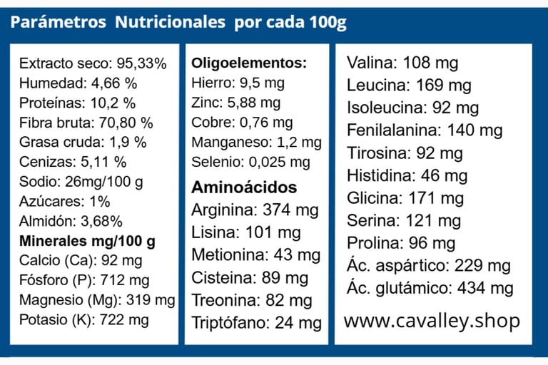✅ Minerales: Magnesio, Fósforo, Potasio, Hierro, Zinc, Cobre, Manganeso, Calcio