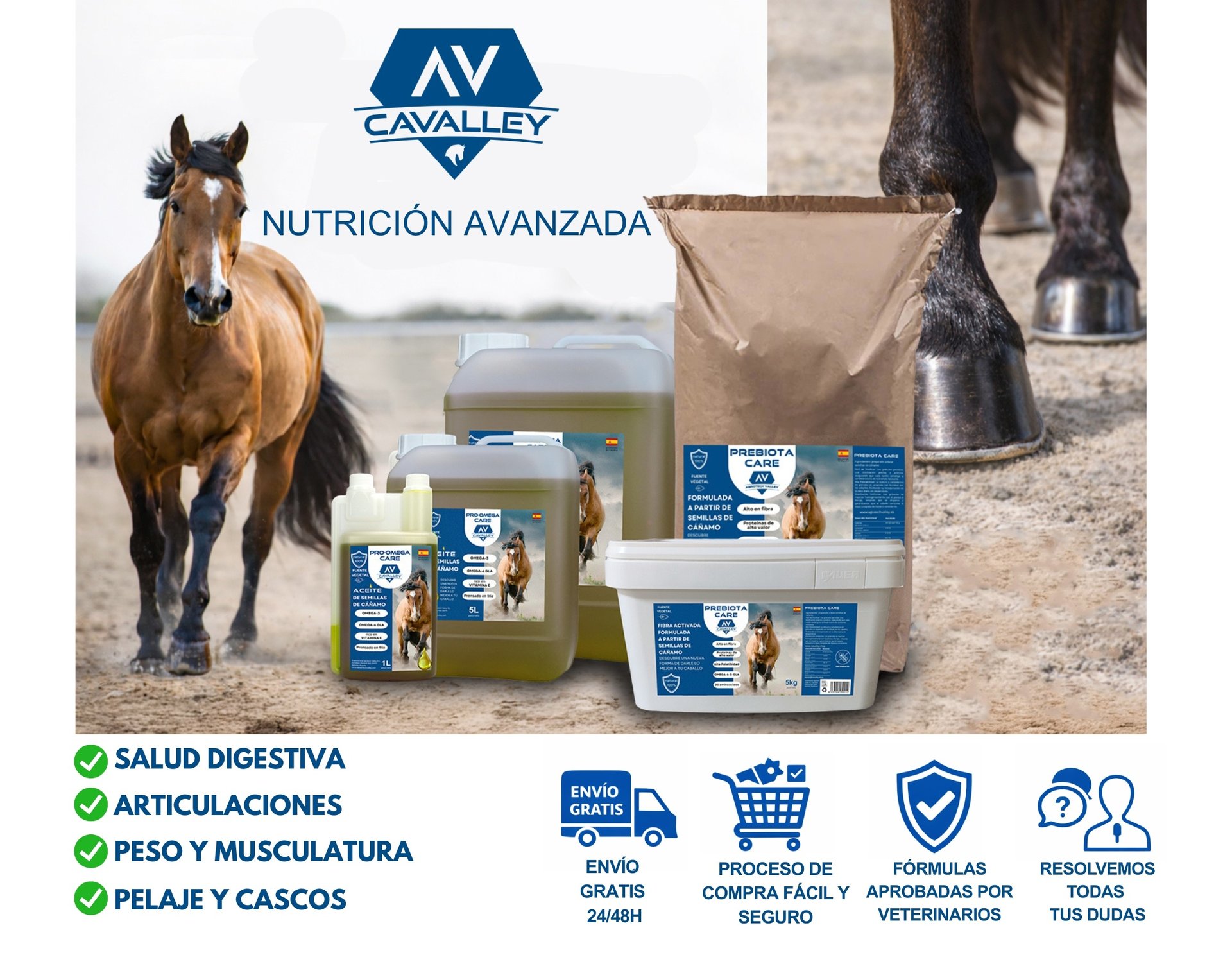 Por eso, en CAVALLEY desarrollamos productos funcionales para actuar en la raíz del problema: ayudar a restaurar el equilibrio intestinal, ayudar a mejorar las fermentaciones naturales y transformar la nutrición en energía real.